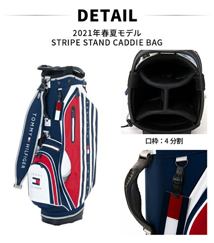 おしゃれ 2021春夏 新作 ゴルフ プレゼント 贈り物 クリスマス バレンタイン ホワイトデー ギフト 敬老の日 父の日 母の日 レディース 女性 女子ゴルフ メンズ 男性 オシャレ かわいい かっこいい インスタ映え インスタ インスタグラム Instagram SNS映え ■ 商品詳細 商品名 STRIPE STAND CADDIE BAG / THMG1SC7 ブランド/メーカー TOMMY HILFIGER GOLF トミーヒルフィガーゴルフ カラー ホワイト(00) / ネイビー(30) / ブルー(34) / レッド(40) 材質 ポリエステル サイズ 9型 (46インチ対応) 口枠 4分割 重量 3kg 付属品 純正フード・アクリルネームプレート ※折り目など付きにくいよう気をつけておりますが、素材の特性上若干のシワはご了承ください。