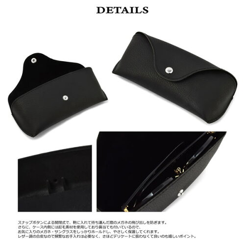 スナップボタンによる開閉式で、鞄に入れて持ち運んだ際のメガネの飛び出しを防ぎます。