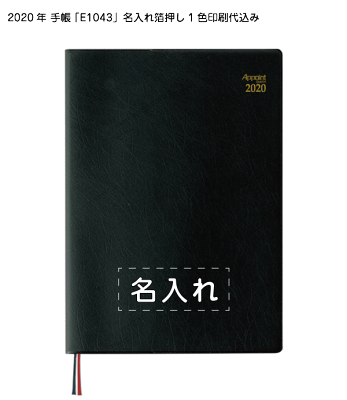 2020年 手帳「E1043」箔押し1色名入れ印刷代込み(30冊セット)1ヶ月ブロック 薄型 A5サイズ ブラック スケジュール帳 カレンダー ダイアリー メモ帳 日記 ノート