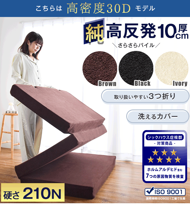 ★20時〜6H全品P5倍★【送料無料】確かな品質 ワンランク上の高密度30D 純 高反発 210N 極厚 10cm 3つ折り セミダブル ベッドマット 腰に優しい 高反発マットレス マットレス 高反発マット 三つ折り 折りたたみ 高反発マットレス 圧縮 圧縮マットレス