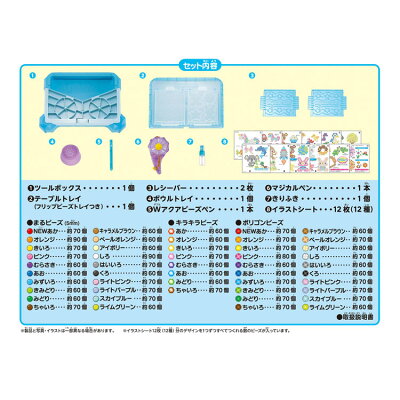 対象年齢:6歳以上 【セット内容】 ・まるビーズ20色、キラキラビーズ8色、ポリゴンビーズ20色、合計48種 約3200個 ・テーブルトレイ(フリップビーズトレイつき)、ツールボックス、Wアクアビーズペン、マジカルペン、きりふき、レシーバー、ボウルトレイ、イラストシート12枚(12種) (C) EPOCH 補足【おもちゃ】【アクアビーズ】【6歳以上】【201907】