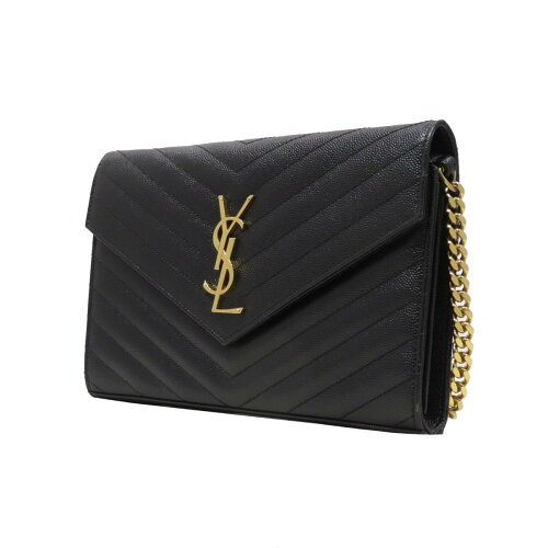 YVES SAINT LAURENT(イブ・サンローラン)/Vステッチチェーンショルダーウォレット レディース/ショルダーバッグ/黒系/レザー/【ランクA】(360452)【中古】イブサンローラン